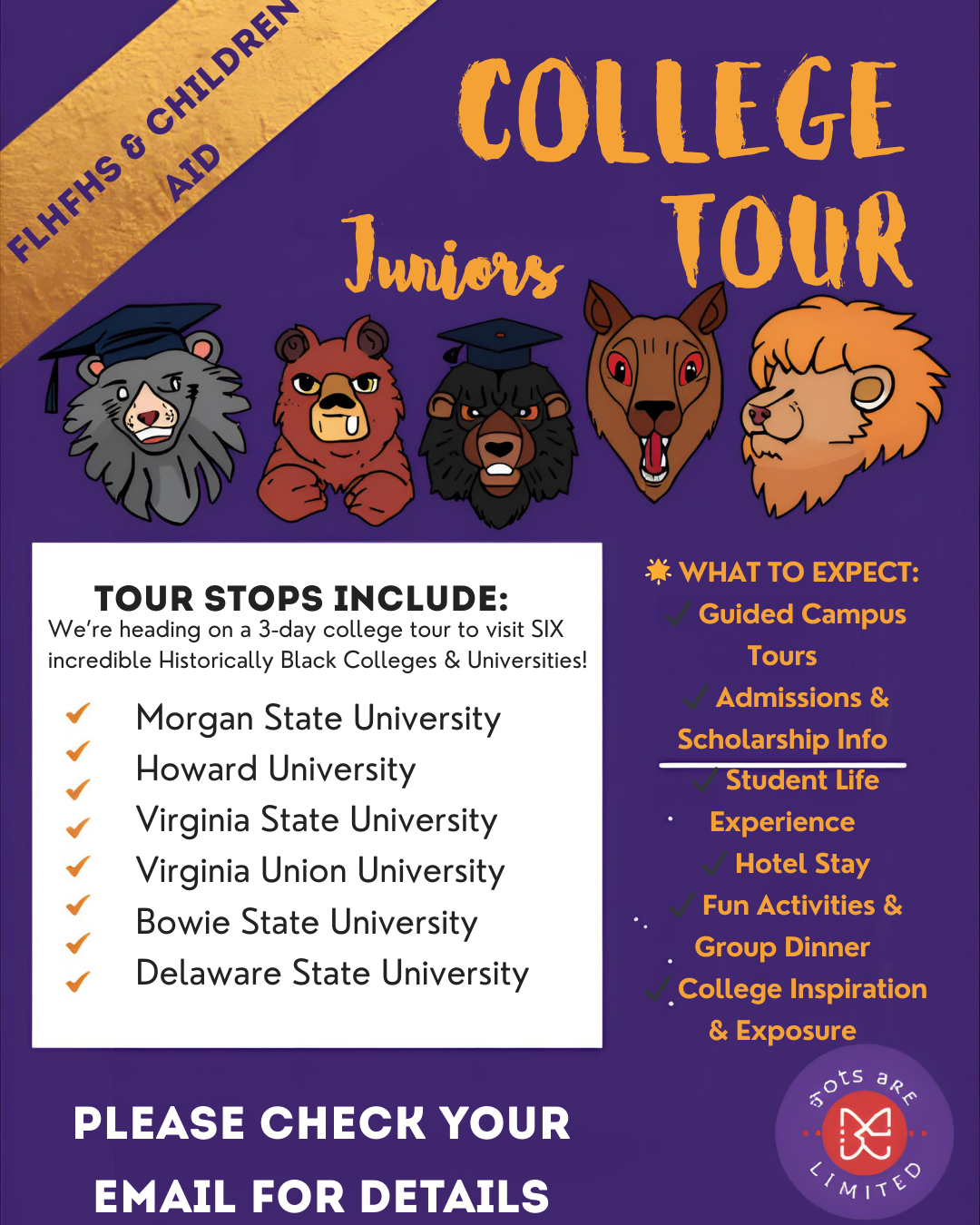You are receiving this announcement because your child met the eligibility requirements to participate in this year’s HBCU College Tour and has received a permission slip.